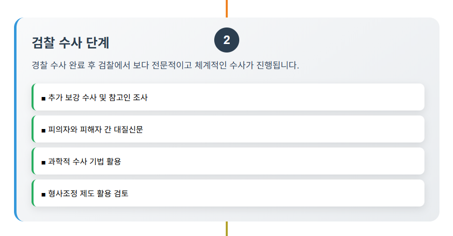 경찰 수사가 완료되면 사건은 검찰로 송치됩니다. 검찰 단계에서는 보다 전문적이고 체계적인 수사가 진행되며, 다음과 같은 절차들이 있을 수 있습니다.